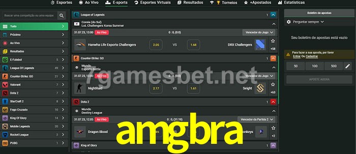O amgbra oferece uma grande seleção de opções de apostas em e-sports com probabilidades competitivas
